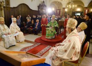 Његова Светост је, после свете Литургије, благословио сабрани народ и представницима Владе Мађарске захвалио за искрено пријатељство и велику помоћ коју представници Мађарске пружају Епархији будимској.