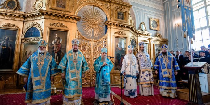 Митрополиту су саслуживали епископи Српске Православне Цркве: бачки Иринеј, моравички Антоније и мохачки Исихије, као и владике кронштатски Назарије и петерхофски Силуан, ректор Духовне академије. После свенадахнуте беседе, митрополит Варсануфије заблагодарио је архијерејима Српске Цркве на радости заједничке молитве и, у знак добродошлице и братске љубави, даривао је владици Иринеју крст и панагију, а епископима Антонију и Исихију панагију.