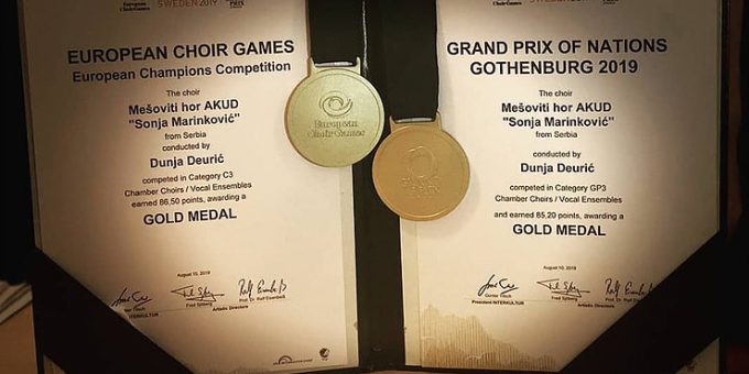 Мешовити хор АКУДУНС „Соња Маринковић“, предвођен диригенткињом Дуњом Деурић, освојио је недавно две златне медаље на Европским хорским играма у Гетеборгу. Тиме су стекли право да 2020. године учествују на Светским хорским играма, које ће бити одржане у Белгији. Наша гошћа у Јутарњем програму била је Дуња Деурић, која нам је говорила о учешћу хора на такмичењу у Шведској почетком августа, као и о свим претходним успесима ансамбла током протекле сезоне. Најавили смо и концерт хора под називом „С Мокрањцем у свет“, који је планиран за 5. октобар.