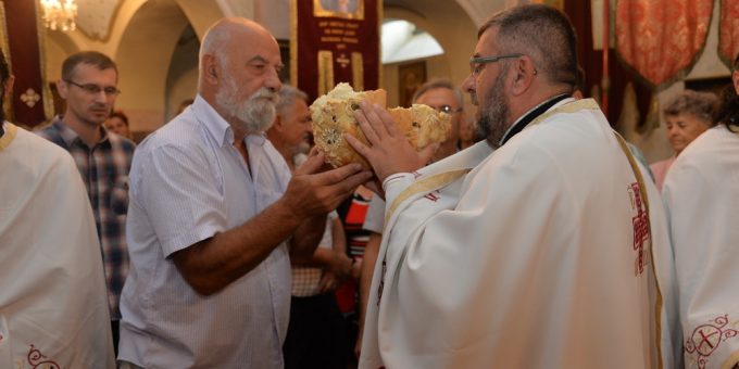 У наставку свете Литургије служен је молебан светитељу Рафаилу, а затим је пререзан колач и освећено славско кољиво. Залог кумства од овогодишњег кума Душана Поповића преузела је Кристина Романов.