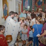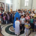 После отпуста Литургије, владика Иринеј зажелео је деци и младима благословен и срећан почетак школске године, а посебно благословен и успешан почетак веронаучне школске године.