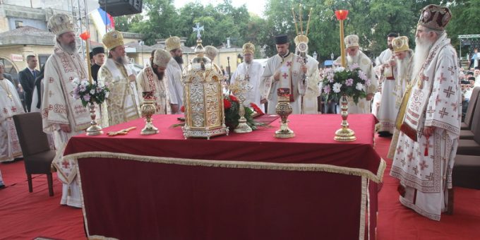 Свету архијерејску Литургију испред Храма Вазнесења Господњег служио је Његово Високопреосвештенство Митрополит загребачко-љубљански г. Порфирије, а саслуживали су Преосвећена господа епископи: будимски Лукијан, банатски Никанор, врањски Пахомије, крушевачки Давид, нишки Арсеније, далматински Никодим, осечкопољски и барањски Херувим, умировљени епископи Филарет и Јован, владике бачки Иринеј и мохачки Исихије, свештенство и монаштво Бачке епархије и других епархија Српске Православне Цркве.