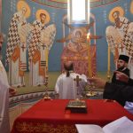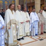 Њихова Преосвештенства епископи бачки Иринеј и мохачки Исихије саслуживали су Његовом Високопреосвештенству Митрополиту црногорско-приморском г. Амфилохију, који је началствовао светом архијерејском Литургијом која је служена након освећења наведеног храма у манастиру Ћелијама. Митрополиту су саслуживали и Архиепископ берлински и све Немачке г. Марко (Руска Загранична Црква), као и Преосвећена господа епископи: врањски Пахомије, шумадијски Јован, ваљевски Милутин, рашко-призренски Теодосије, крушевачки Давид, осечкопољски и барањски Херувим, умировљени епископи Атанасије и Јован, свештенство и монаштво више епархија Српске Православне Цркве.