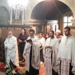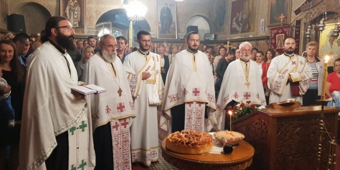 Вечерњим богослужењем началствовао је протопрезвитер-ставрофор Ђорђе Ђурђев, сабрат Светогеоргијевског храма у Новом Саду, уз саслужење више свештеника Епархије бачке. По благосиљању славских дарова, отац Ђорђе је произнео надахнуту беседу о дару родитељства. Овогодишњи кум био је господин Ђорђе Павловић са породицом, који је храму у Шајкашу даривао нове богослужбене одежде. Залог кумства за идућу годину примио је господин Жељко Павловић из Шајкаша.