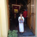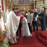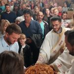 Вечерњим богослужењем началствовао је протопрезвитер-ставрофор Ђорђе Ђурђев, сабрат Светогеоргијевског храма у Новом Саду, уз саслужење више свештеника Епархије бачке. По благосиљању славских дарова, отац Ђорђе је произнео надахнуту беседу о дару родитељства. Овогодишњи кум био је господин Ђорђе Павловић са породицом, који је храму у Шајкашу даривао нове богослужбене одежде. Залог кумства за идућу годину примио је господин Жељко Павловић из Шајкаша.