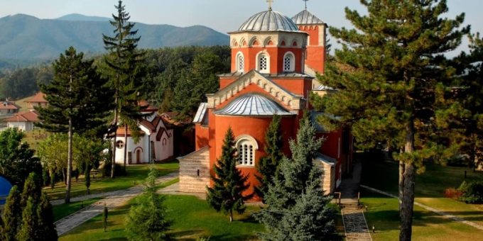 Манастир Жичу са црквом посвећеном Вазнесењу Господњем подигао је краљ Стефан Првовенчани са својим братом Светим Савом, између 1208. и 1215. године. Жичка црква је једнобродна, с једном споља осмостраном куполом на коцкастом постољу широком колико и брод. Олтар је данас једноделан, с полукружном апсидом, а првобитно је био троделан; на северној и јужној страни постојали су проскомидија и ђаконик, вратима повезани са олтаром. Жича је осликана заузимањем Светога Саве.