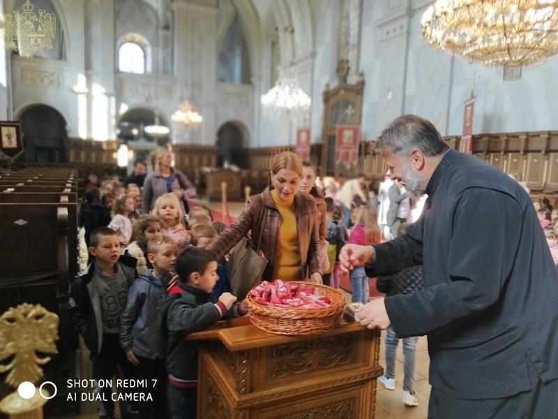 Срдачно дочекавши дечицу и пожелевши им добродошлицу, протојереј Петар Тривуновић, настојатељ храма, говорио је о историјату чурушке светиње и, у име Црквене општине, деци је уручио пригодне дарове.