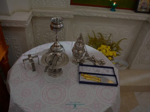 На крају Литургије освештани су славски дарови, а затим и свети сасуди за вршење свете Евхаристије. Свете сасуде даривала је парохијска заједница.