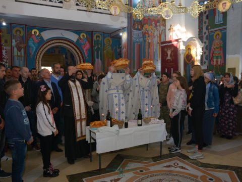 На крају Литургије освештани су славски дарови, а затим и свети сасуди за вршење свете Евхаристије. Свете сасуде даривала је парохијска заједница.