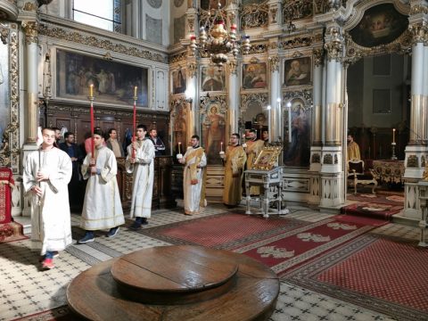 Његово Преосвештенство Епископ бачки г. Иринеј служио је свету архијерејску Литургију у Светогеоргијевском храму у Новом Саду, у недељу, 27. октобра 2019. године, на празник Преподобне мати Параскеве. Владици су саслуживали свештеници при наведеном храму, као и новосадски ђакони.
