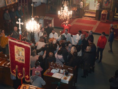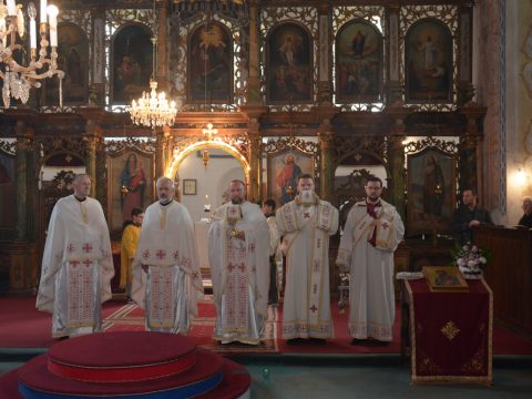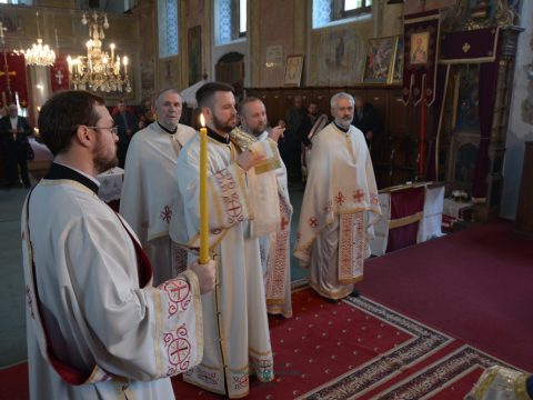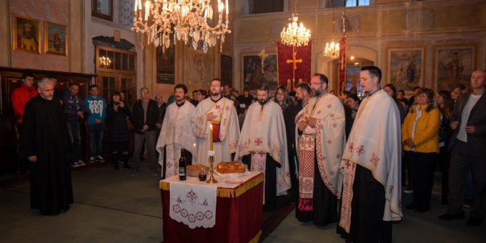 Вечерњим богослужењем началствовао је протонамесник Ђорђе Стојисављевић, војни свештеник. Благосиљани су славски дарови које је припремио кум Лазар Булић са породицом. Отац Ђорђе је одржао кратку беседу и честитао славу. За ново кумство светом храму јавио се господин Васо Кресовић из Новог Сада.