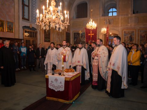 Вечерњим богослужењем началствовао је протонамесник Ђорђе Стојисављевић, војни свештеник. Благосиљани су славски дарови које је припремио кум Лазар Булић са породицом. Отац Ђорђе је одржао кратку беседу и честитао славу. За ново кумство светом храму јавио се господин Васо Кресовић из Новог Сада.