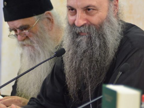 После појања пригодне стихире хора Црквене општине новосадске Свети Јован Дамаскин, Његово Високопреосвештенство Митрополит загребачко-љубљански др Порфирије нагласио је, првенствено, својеобразни значај сабрања, назвавши га симпосионом поводом једног уистину светог и часног дела. Упутивши срдачне честитке како цењеним издавачима на одштампаном издању, тако и врсном преводиоцу господину Станимиру Јакшићу на оствареном преводилачком достигнућу, Високопреосвештени Митрополит др Порфирије је истакао да у времену које се одликује хипертрофијом доктората и доминатном, примарном употребом научног апарата која у први план ставља историјско-филолошке димензије истраживане теме, књига владике Иринеја постала је класик, пре свега, благодарећи својој дубокој садржини. Она је стекла такав епитет услед чињенице што пружа темељне и вишеслојне одговоре на есенцијална питања постојања Бога и разлоге остварења домостроја спасења у личности Оваплоћеног Господа Исуса Христа, и то путем распознавања разлике између Божанске суштине и енергије, једне суштине и три личности Бога, веродостојно тумачећи на тај начин православну тријадологију, христологију, пневматологију, еклисиологију, космологију и, уопште узевши, све аспекте и перспективе наше вере. Дотична књига, према запажањима Митрополита Порфирија, много боље проучава и разуме равнотежу између суштине и личности Божије у односу на владајућу персоналистичку теолошку мисао. Истовремено, промовисано дело враћа и подучава читаоце предањској вери без које нема ни аутентичног нити истинског начина постојања. Избегавајући искушење коме су склони савремени теолози да буду оригинални и неретко исправљају Оце Цркве према сопственом нахођењу, књига Епископа Иринеја представља канон и параметар за коришћење разноврсног научног апарата, али и истовремено, чврсто пребивање у вери Отаца и предању Свете Цркве. Стога је представљено дело, према завршним мислима Митрополита загребачко-љубљанског, продужено Јеванђеље а владика Иринеј, по превасходству, богослов.
