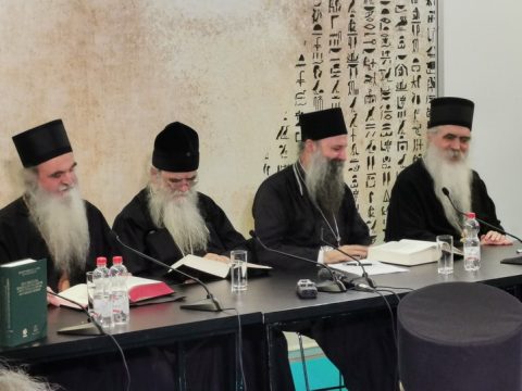 После појања пригодне стихире хора Црквене општине новосадске Свети Јован Дамаскин, Његово Високопреосвештенство Митрополит загребачко-љубљански др Порфирије нагласио је, првенствено, својеобразни значај сабрања, назвавши га симпосионом поводом једног уистину светог и часног дела. Упутивши срдачне честитке како цењеним издавачима на одштампаном издању, тако и врсном преводиоцу господину Станимиру Јакшићу на оствареном преводилачком достигнућу, Високопреосвештени Митрополит др Порфирије је истакао да у времену које се одликује хипертрофијом доктората и доминатном, примарном употребом научног апарата која у први план ставља историјско-филолошке димензије истраживане теме, књига владике Иринеја постала је класик, пре свега, благодарећи својој дубокој садржини. Она је стекла такав епитет услед чињенице што пружа темељне и вишеслојне одговоре на есенцијална питања постојања Бога и разлоге остварења домостроја спасења у личности Оваплоћеног Господа Исуса Христа, и то путем распознавања разлике између Божанске суштине и енергије, једне суштине и три личности Бога, веродостојно тумачећи на тај начин православну тријадологију, христологију, пневматологију, еклисиологију, космологију и, уопште узевши, све аспекте и перспективе наше вере. Дотична књига, према запажањима Митрополита Порфирија, много боље проучава и разуме равнотежу између суштине и личности Божије у односу на владајућу персоналистичку теолошку мисао. Истовремено, промовисано дело враћа и подучава читаоце предањској вери без које нема ни аутентичног нити истинског начина постојања. Избегавајући искушење коме су склони савремени теолози да буду оригинални и неретко исправљају Оце Цркве према сопственом нахођењу, књига Епископа Иринеја представља канон и параметар за коришћење разноврсног научног апарата, али и истовремено, чврсто пребивање у вери Отаца и предању Свете Цркве. Стога је представљено дело, према завршним мислима Митрополита загребачко-љубљанског, продужено Јеванђеље а владика Иринеј, по превасходству, богослов.
