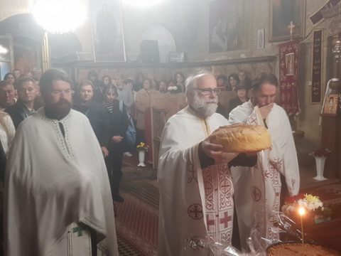 Вечерњим богослужењем началствовао је протојереј Остоја Нијемчевић, парох у Доњем Ковиљу, уз саслужење јерејâ Леа Малешевића и Данијела Кобиљског. Беседећи, отац Данијел је говорио о подвигу светитеља Димитрија.
