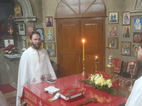Вечерњим богослужењем началствовао је протојереј Остоја Нијемчевић, парох у Доњем Ковиљу, уз саслужење јерејâ Леа Малешевића и Данијела Кобиљског. Беседећи, отац Данијел је говорио о подвигу светитеља Димитрија.