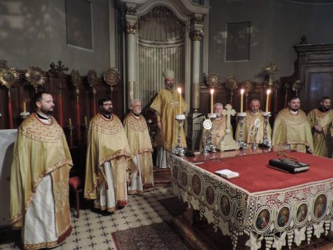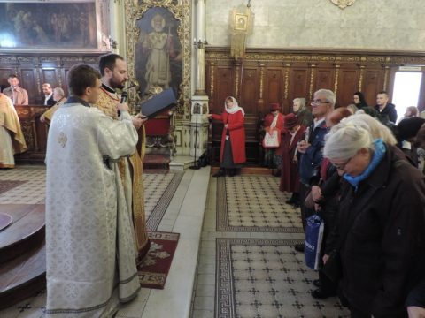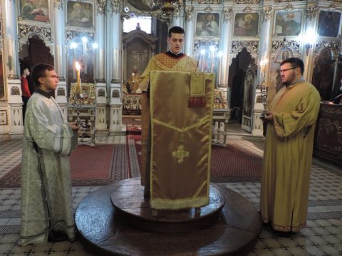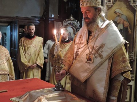 Његово Преосвештенство Епископ мохачки г. Исихије служио је свету архијерејску Литургију у Светогеоргијевском храму у Новом Саду, у петак, 8. новембра 2019. године, на празник Светог великомученика Димитрија – Митровдан. Владици су саслуживали свештеници при наведеном храму, као и новосадски ђакони.