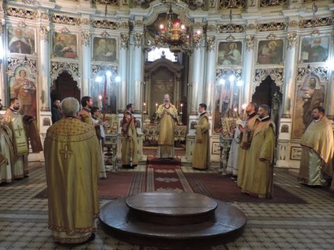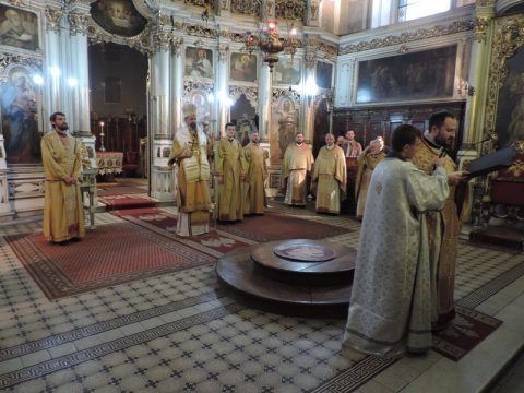 Његово Преосвештенство Епископ мохачки г. Исихије служио је свету архијерејску Литургију у Светогеоргијевском храму у Новом Саду, у петак, 8. новембра 2019. године, на празник Светог великомученика Димитрија – Митровдан. Владици су саслуживали свештеници при наведеном храму, као и новосадски ђакони.
