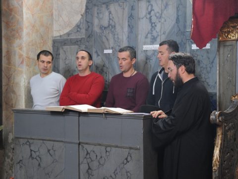 За певницом су појали штићеници Заједнице Земља живих и презвитер Даниел Кобиљски, надлежни парох. По прочитаном јеванђелском одељку беседио је прота Бранко.