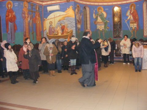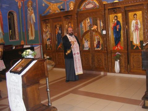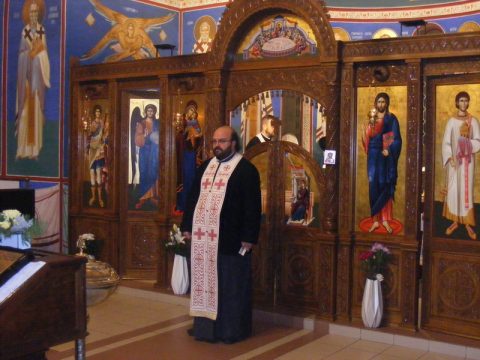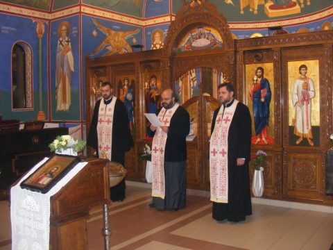 Протојереј Бранислав Мркић, архијерејски намесник новосадски други, служио је вечерње богослужење 1. децембра 2019. године, у храму Светога великомученика Георгија у Темерину.