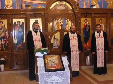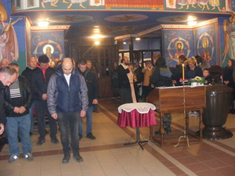 Протојереј Бранислав Мркић, архијерејски намесник новосадски други, служио је вечерње богослужење 1. децембра 2019. године, у храму Светога великомученика Георгија у Темерину.