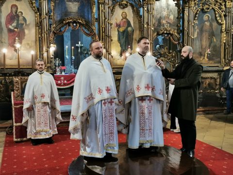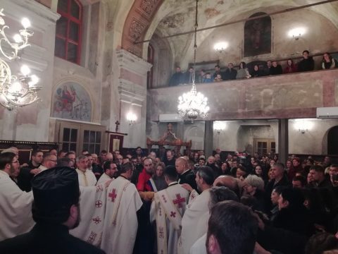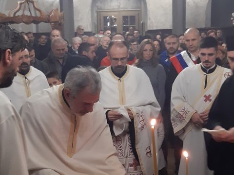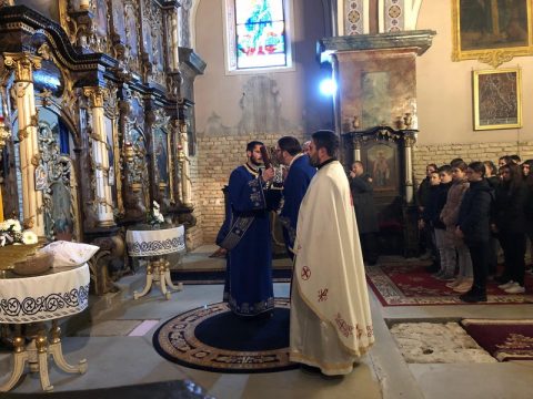 На вечерњем богослужењу началствовао је протојереј Mиодраг Шипка, архијерејски намесник суботички. Отац Миодраг је поздравио славске кумове и присутне у храму Ваведења Пресвете Богородице, честитавши свима славу.