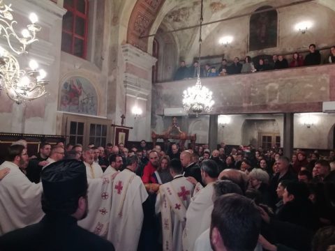 Алмашки храм у Новом Саду – Протопрезвитер-ставрофор Миливој Мијатов, архијерејски намесник новосадски први, служио је свету Литургију у среду, 4. децембра 2019. године, у храму Света Три Јерарха у Новом Саду, уз саслужење протопрезвитерâ Владана Симића, Бранка Вујиновића и Бране Миловца, презвитера Александра Поповића и ђакона Ивана Васиљевића. После прочитане јеванђелске перикопе прота Миливој је честитао присутнима празник Ваведења Пресвете Богородице. Нека дâ Бог да трајним молитвеним заступништвом Пресвете Дјеве Марије милост Божја увек буде на свима вама и на вашој деци, и на свима нама, и на свима онима који желе да живе по Божјим уредбама и да тако достигну обећану награду у Царству Божјем, поручио је архијерејски намесник новосадски први.