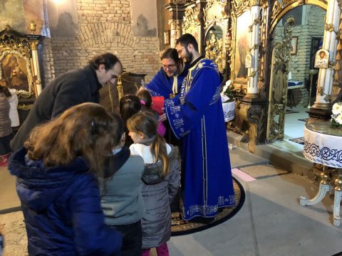 На вечерњем богослужењу настављена је славска свечаност благосиљањем славских дарова – колача и кољива. Овогодишњи кум храмовне славе био је господин Радован Трњаков са породицом, а залог кумства за следећу годину прихватила је породица господина Које Бајуновића.