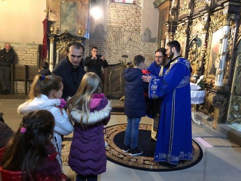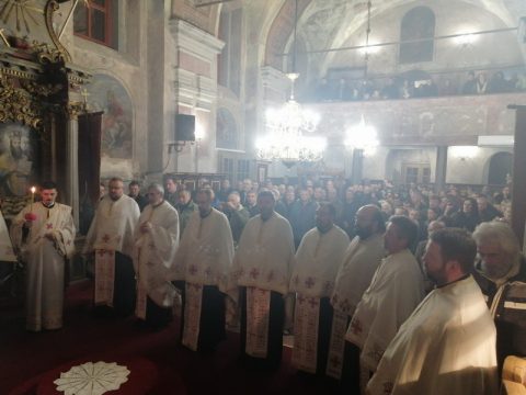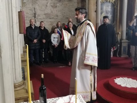 На вечерњем богослужењу началствовао је протојереј Mиодраг Шипка, архијерејски намесник суботички. Отац Миодраг је поздравио славске кумове и присутне у храму Ваведења Пресвете Богородице, честитавши свима славу.