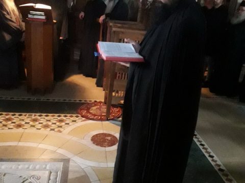 Беседећи по прочитаном јеванђелском одељку, митрополит Порфирије је казао да је монах сведок Царства Божјега. Допринос монаха је да буде сведок Царства небескога, да својим постојањем и својим животом, а не својом речју, преображавајући себе преображава и свако место на којем се налази. Сваки монах треба да буде свестан да, испуњавајући оно што је обећао, треба да буде оно на шта га Господ позива – да буде свети, да иде ка светости и ка савршенству. Све што се у Цркви Христовој дешава увек се тиче читаве Цркве. Ова света Литургија, и монашење које смо у њој обавили, јесте дар за читаву Цркву. Сви се данас радујемо! Честитамо владици Иринеју као духовнику брата, монаха и оца Јустина, честитамо и оцу Јустину, али те честитке значе, пре свега, молитву да оно што је обећао држи, поручио је Митрополит загребачко-љубљански.