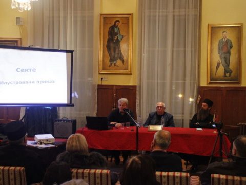 О овој актуелној теми су говорили: г. Зоран Луковић, члан Европске федерације за праћење секти, и г. Ламбе Ђорелијевски, специјални педагог, некадашњи шеф Одсека за превенцију наркоманије при Криминалистичкој полицији у Београду.