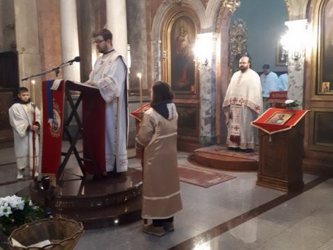 У недељу Светих Праотаца, 29. децембра 2019. године, протојереј Бранислав Мркић, архијерејски намесник новосадски други и настојатељ Светосавског храма у Новом Саду, служио је свету Литургију у храму Преноса моштију Светога Николаја Мирликијског у Жабљу, уз саслужење свештенства архијерејског намесништва жабаљског.