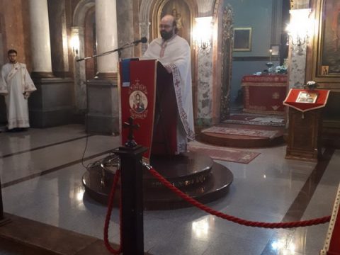 У недељу Светих Праотаца, 29. децембра 2019. године, протојереј Бранислав Мркић, архијерејски намесник новосадски други и настојатељ Светосавског храма у Новом Саду, служио је свету Литургију у храму Преноса моштију Светога Николаја Мирликијског у Жабљу, уз саслужење свештенства архијерејског намесништва жабаљског.