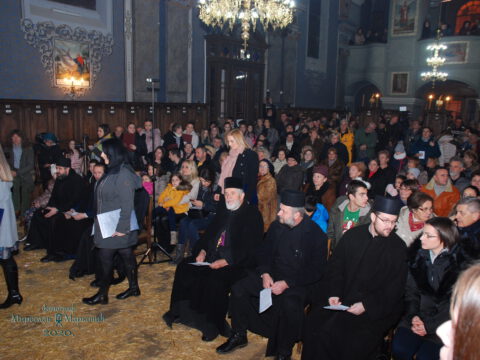 Пре почетка концерта присутне је поздравио протојереј Стевица Илић, архијерејски намесник бачкопаланачки. Гости концерта су били ученици хорске секције Основне школе Алекса Шантић из Гајдобре-Нове Гајдобре и хор Антифон при Светоуспенском храму у Новом Саду. На концерту су изведене богослужбене и народне божићне композиције, српских и руских композитора.