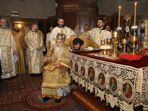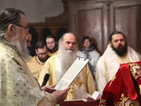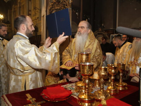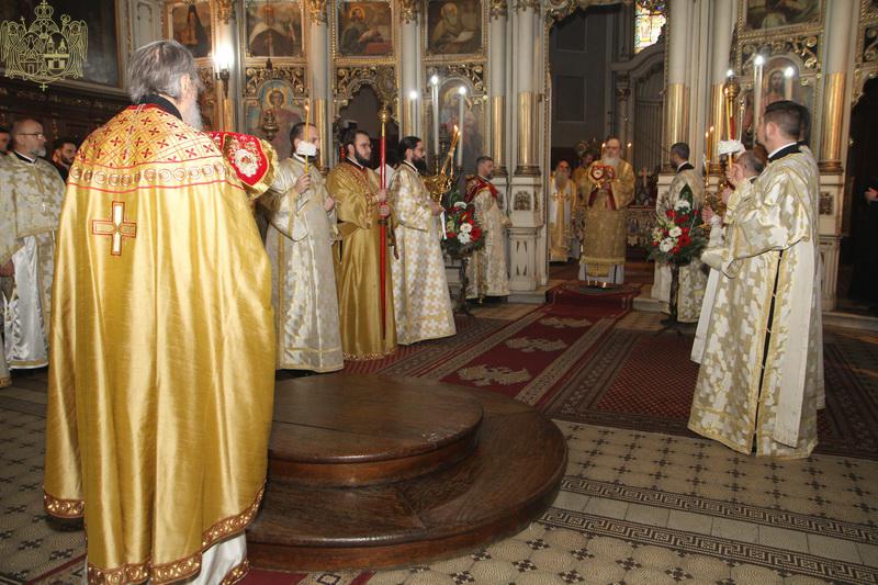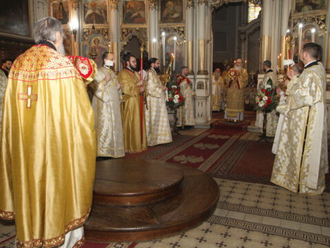 На светој архијерејској Литургији, у Светогеоргијевском храму у Новом Саду, началствовао је Епископ бачки г. Иринеј, а саслуживали су Преосвећена господа епископи: врањски Пахомије, крушевачки Давид, нишки Арсеније, осечкопољски и барањски Херувим и мохачки Исихије, архимандрити Јован (Радосављевић) и Прокопије (Тајар), свештенство и ђаконство више епархија наше помесне Православне Цркве.