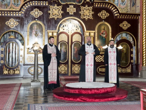 Протојереј Дејан Станојев, архијерејски намесник бечејски, служио је вечерње богослужење 31. јануара 2020. године, у храму Вазнесења Господњег у Ади.