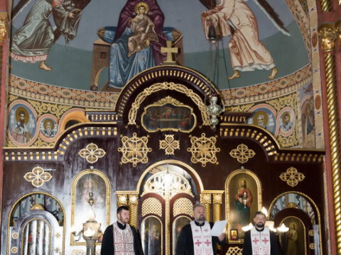 Протојереј Дејан Станојев, архијерејски намесник бечејски, служио је вечерње богослужење 31. јануара 2020. године, у храму Вазнесења Господњег у Ади.