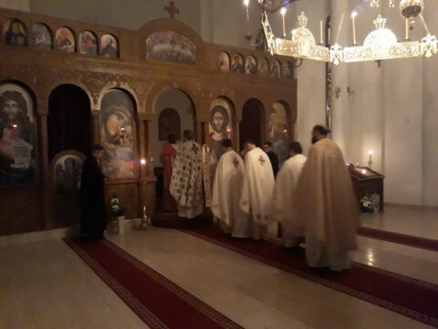 За величанствено појање током богослужења побринули су се гости. Господин Јован Ракочевић водио је десну певницу, док су у левој певници песмом прослављали Господа полазници Школе црквеног појања Свети Јован Дамаскин.