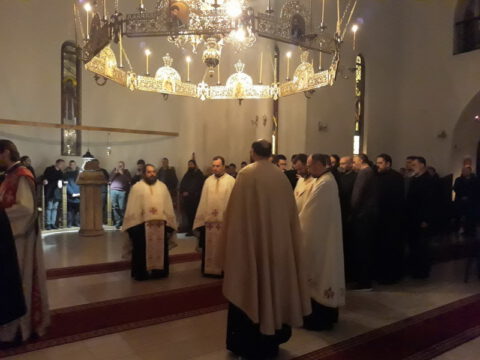 За величанствено појање током богослужења побринули су се гости. Господин Јован Ракочевић водио је десну певницу, док су у левој певници песмом прослављали Господа полазници Школе црквеног појања Свети Јован Дамаскин.