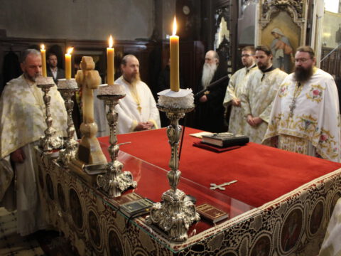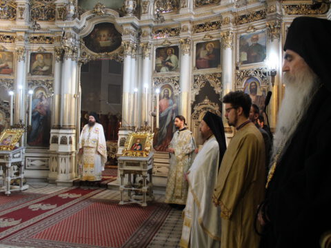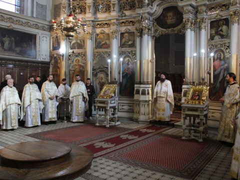 У Недељу о блудном сину, 3/16. фебруара 2020. године, у присуству Његовог Преосвештенства Епископа бачког г. Иринеја, на светој Литургији у Саборном храму у Новом Саду началствовао је архимандрит Никанор (Папаниколау), настојатељ манастира Свете Тројице на планини Олимпу, у Грчкој. Саслуживали су архимандрит Василије (Папаниколау), свештено братство Светогеоргијевског храма и новосадски ђакони.