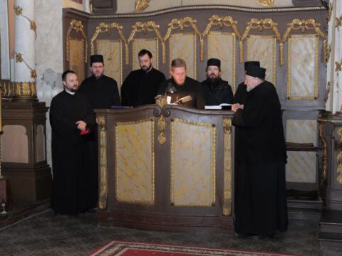 Протојереј-ставрофор Слободан Марковић, који је исповедио свештенике, подсетио је на потребу духовне будности у времену многих искушења и пожелео свима да, у духовној радости и сваком здрављу, дочекају Празник за који се свим бићем добрим подвигом подвизавају – Васкрсење Сина Божјега.