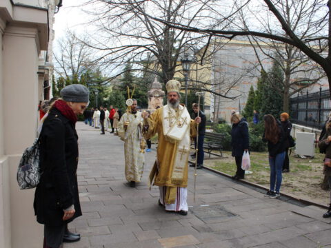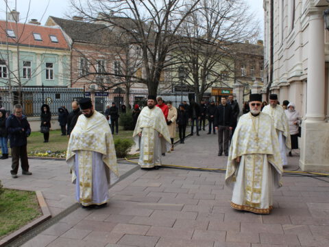 У Крстопоклону недељу, 9/22. марта, на светој архијерејској Литургији у Саборном храму у Новом Саду началствовао је Његово Преосвештенство Епископ мохачки господин Исихије, уз саслужење свештеног братства Светогеоргијевског храма.
