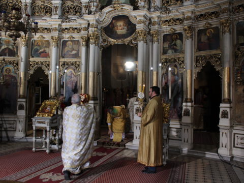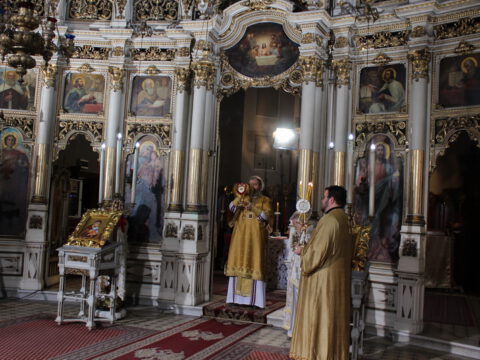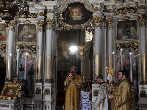 У току свете Литургије проузношене су посебне прозбе и молитва за заустављање ширења заразе новојављеном опаком болешћу, као и за исцељење и опоравак оболелих. Поступајући у складу са упутствима државних органа, верни народ предвођен свештенством молитвено је учествовао на светој Литургији, присуствујући у порти Саборног храма.