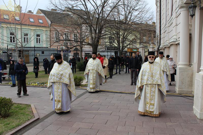 У Крстопоклону недељу, 9/22. марта, на светој архијерејској Литургији у Саборном храму у Новом Саду началствовао је Његово Преосвештенство Епископ мохачки господин Исихије, уз саслужење свештеног братства Светогеоргијевског храма.