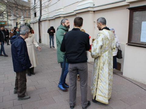 У току свете Литургије проузношене су посебне прозбе и молитва за заустављање ширења заразе новојављеном опаком болешћу, као и за исцељење и опоравак оболелих. Поступајући у складу са упутствима државних органа, верни народ предвођен свештенством молитвено је учествовао на светој Литургији, присуствујући у порти Саборног храма.
