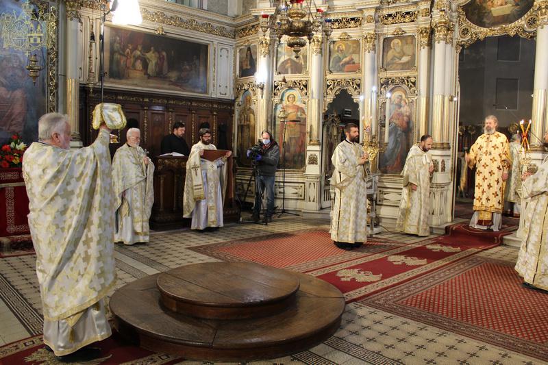 Његово Преосвештенство Епископ новосадски и бачки г. Иринеј служио је свету архијерејску Литургију на празник Уласка Господа Исуса Христа у Јерусалим, 12. априла 2020. године, у Светогеоргијевском храму у Новом Саду. Владици Иринеју су саслуживали: Његово Преосвештенство Епископ мохачки г. Исихије, свештеници и ђакони Саборног храма.