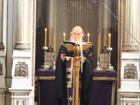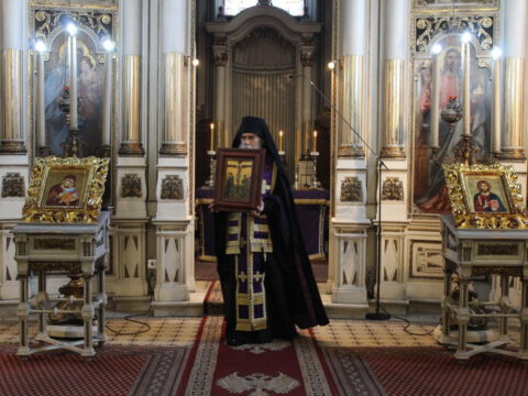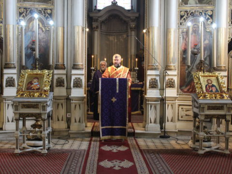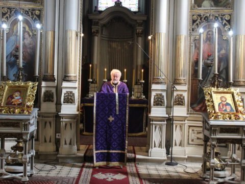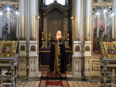 На Велики четвртак, 3/16. априла 2020. године, у Саборном храму Светог великомученика Георгија у Новом Саду, служено је Велико бденије, током кога је прочитано дванаест одељака из светог Јеванђеља о страдањима Господа Исуса Христа.
