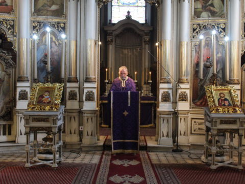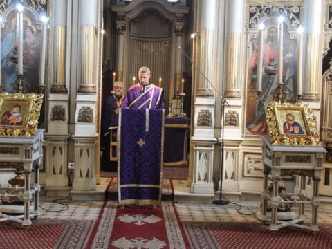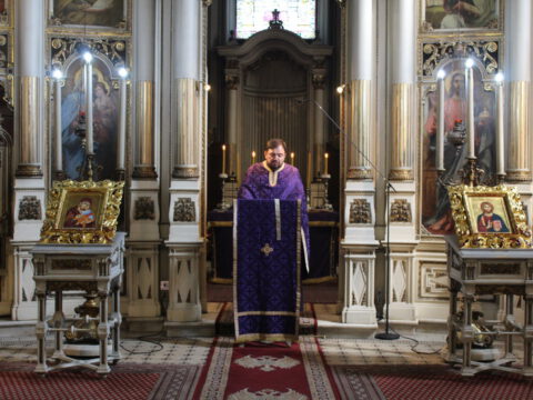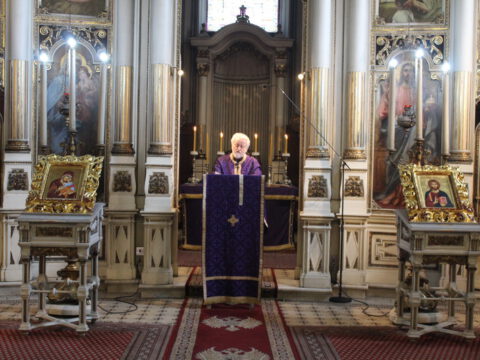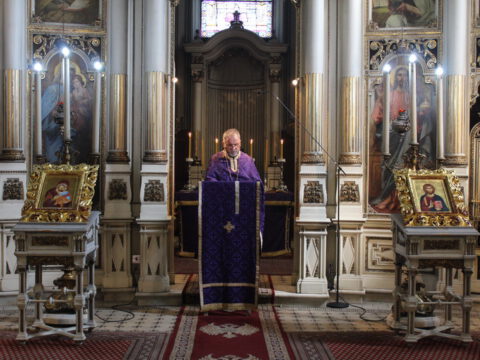 На Велики четвртак, 3/16. априла 2020. године, у Саборном храму Светог великомученика Георгија у Новом Саду, служено је Велико бденије, током кога је прочитано дванаест одељака из светог Јеванђеља о страдањима Господа Исуса Христа.