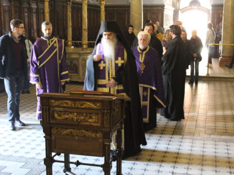 Његово Преосвештенство Епископ новосадски и бачки господин Иринеј прочитао је први јеванђелски одељак и дванаести, у којем је описан догађај запечаћења гроба, где је положено тело Христово. Јеванђелска зачала о спасоносним страдањима Господа Исуса Христа читали су и свештеници и ђакони Саборног храма у Новом Саду.