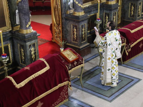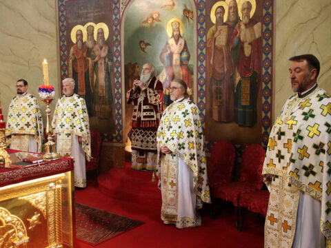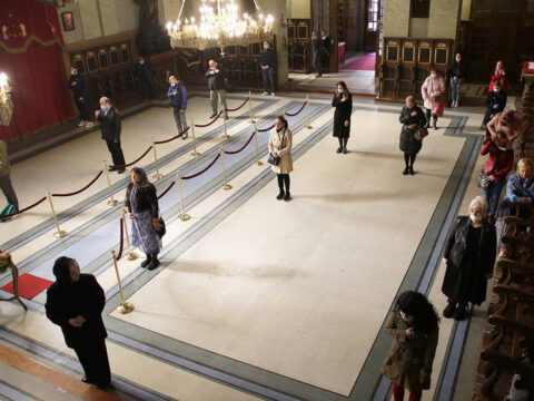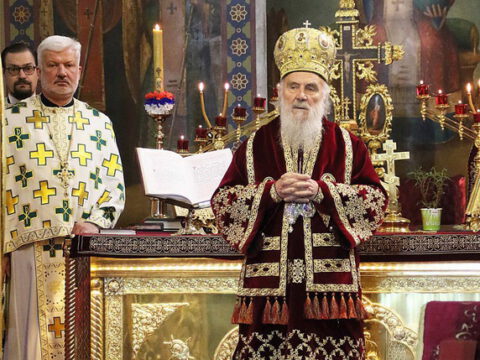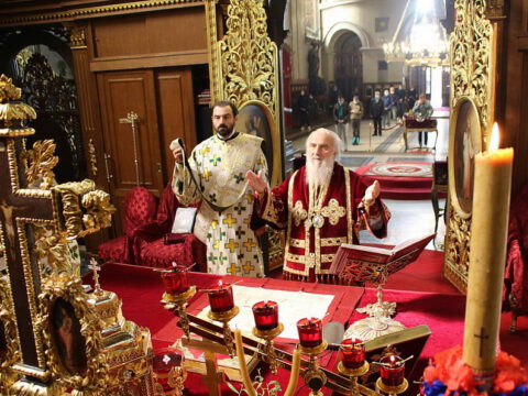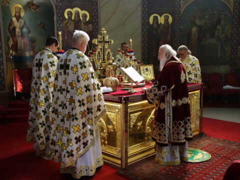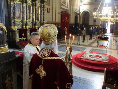 Његова Светост Патријарх српски г. Иринеј служио је 16. априла 2020. године, на Велики четвртак, свету архијерејску Литургију у Саборном храму у Београду